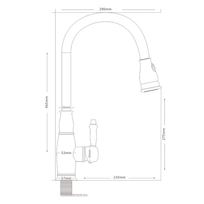 ברז מטבח גבוה נשלף 2 מצבי זרימה