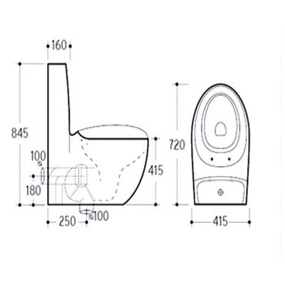 אסלה מונובלוק לבן, שטיפה היקפית מושב קשיח הידראולי נשלף